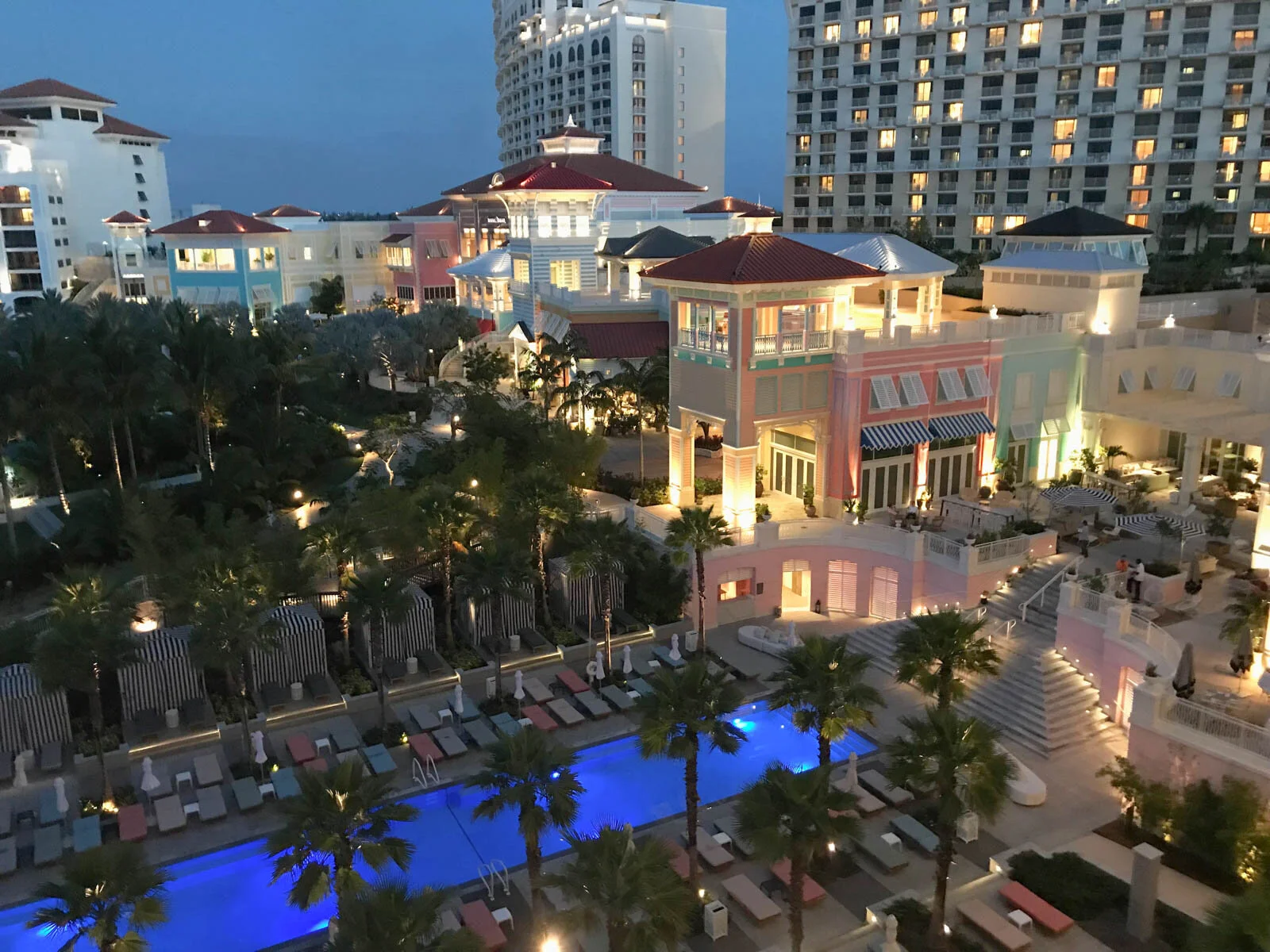 -Adults only Privilege Pool βparty poolβ: The daybeds in the water and bottle service will have you immediately feeling like you escaped the family feel of the other parts of the Baha Mar Resorts. It has an impressive resemblance to Las Vegas with the day beds, cabanas and ladies who deliver your bottles with sparklers. Bungalow Pool: While the bungalow pool still has music (not as loud) and a more relaxed feel, you can come to this pool as a family and relax in the sun. They even have a fun large turquoise βrubber duckyβ that screams the fun vibe! Both of these pools have great lunch options (try the mango shrimp salad and avocado fries!).