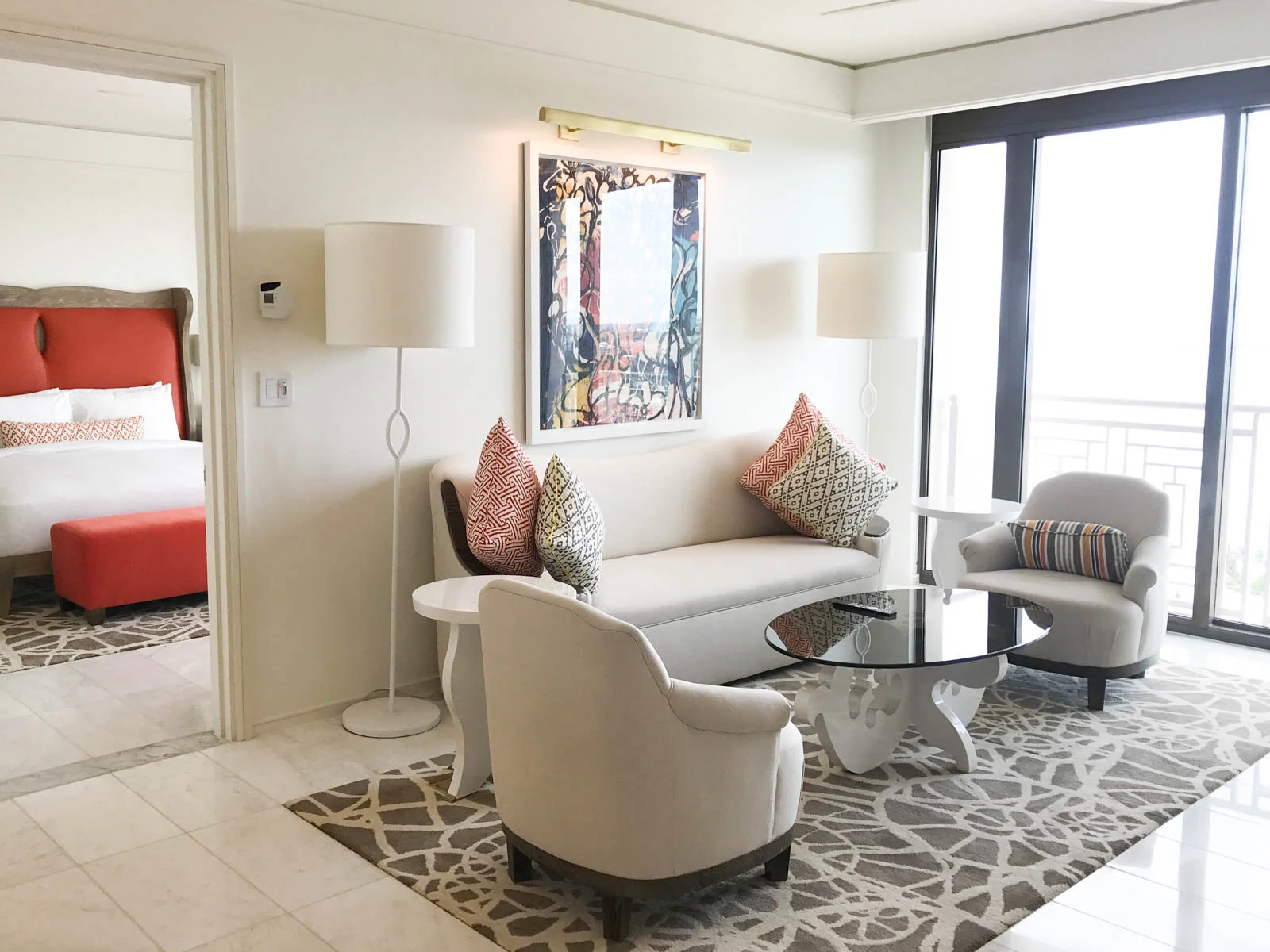 Portrays style, luxury and a hip Bahamian boutique feel throughout the resort. The guest rooms are every tone of white with the fun pops of gray and turquoise. The hotel itself is pink with the surrounding pool areas consisting of multiple pastels.